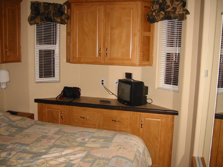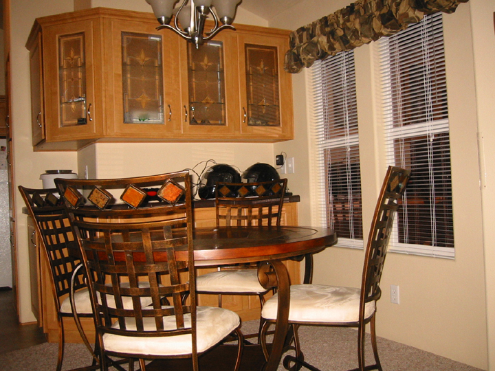Our Park Model a cozy 400 square feet, but works well for 2 people. We added a deck, laundry/craft room and workshop to give us more space.